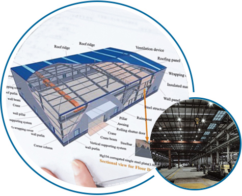 围护系统:普通彩钢单板,夹芯板,铝镁锌单板,到各种复合夹心聚脂、岩绵、发泡板等围护系统从材料到项目施工应有尽有。